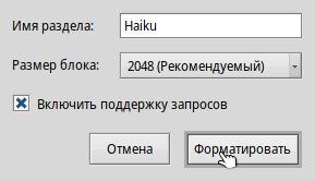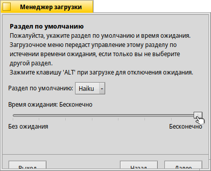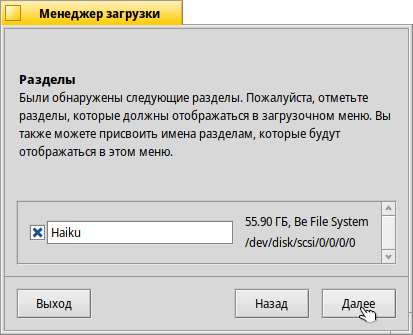 Выберите раздел с Haiku, который будет присутствовать в загрузочном меню: