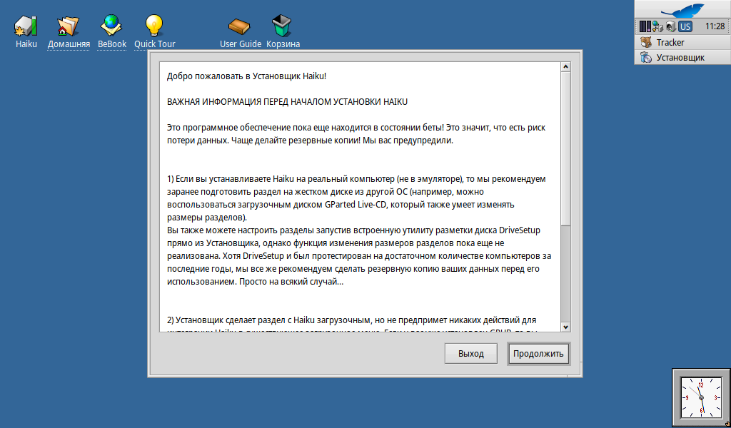 В этой же статье рассмотрим установку Haiku на компьютер, основные проблемы с железом и принцип работы с её графическим интерфейсом.